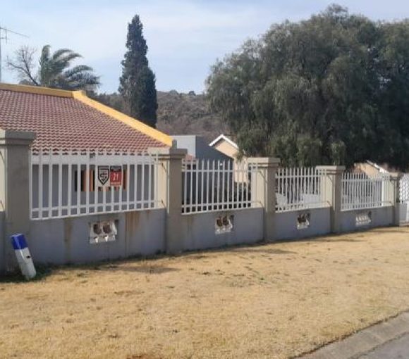 Suitable for a large family. Consisting of 4 Bedrooms, 2 bathrooms, 1 Lounge, 1 Dining room, 1 Lounge, 1 Kitchen, Scullery, Laundry Double Garage, Swimming pool, and neat garden. Prepaid Electricity.